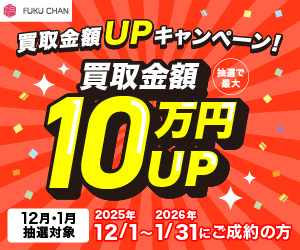 福ちゃんは即日査定・即日現金化が可能で、キャンペーンにより出張買取限定で買取価格がアップします。
