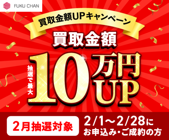 今なら出張買取限定で、買取金額を含めて最大10万円まで買取金額がアップします!